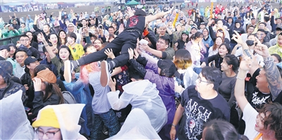 朴树、天堂乐队、面孔乐队、CMCB、夏日部落、王喂马、发条卡目索、醒山乐队、4U乐队、贵族乐队、糖衣娃娃,11组音乐人悉数亮相,歌迷们都高举起手臂热情和声,现场虽有绵绵细雨,却挡不住气氛一片火热沸腾。