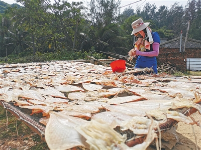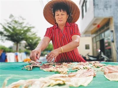 制作美味的鱿鱼干,是万宁乌场人的拿手好戏。