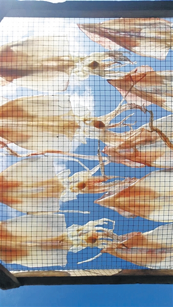 “晒鱿鱼干很麻烦的哩,一天要翻动4-5次。”蔡月琴说,晒鱿鱼的时候,人就得在家留守,每隔两个小时要给鱿鱼翻身,“不给鱿鱼翻身,就会晒得不均匀,会影响最后的品质。”