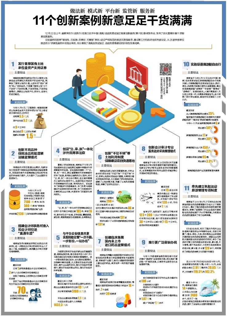 这些案例均按照“首创性、已实施、效果好、可复制”原则,经过严格规范的报送及筛选程序,通过第三方机构评估和专家论证,从26家申报单位报送的57项候选案例中优选出来的,充分展现了海南自贸试验区、自由贸易港建设的阶段性发展成果。