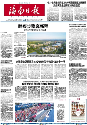 | 海南日报 头版 001 2019-12-231 2019年12月23日 星期一 |