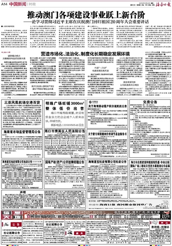 | 海南日报 中国新闻时政 014 2019-12-231 2019年12月23日 星期一 |