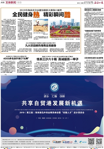 | 海南日报 文体新闻综合 016 2019-12-231 2019年12月23日 星期一 |