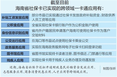 目前,我省已在省级层面成立海南省社保卡一卡通中心,也是全国首个省级社保卡一卡通中心,市县级层面,文昌市、屯昌县已成立一卡通服务管理机构,其余市县都在积极加快机构建设。