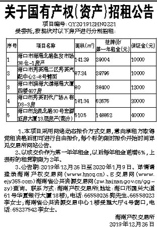 关于国有产权(资产)招租公告