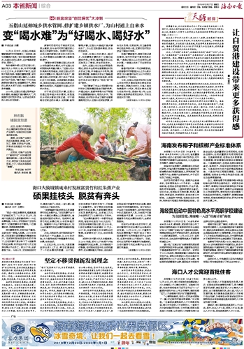 海南日报 本省新闻综合 003 2019-12-271 2019年12月27日 星期五