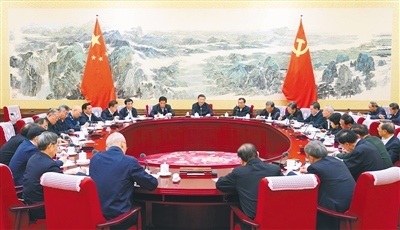 会议强调,维护习近平总书记党中央的核心、全党的核心地位,维护党中央权威和集中统一领导,是推动新时代中国特色社会主义不断发展前进的根本政治保证。面对当今世界百年未有之大变局,面对错综复杂的国内外风险挑战,习近平总书记高瞻远瞩、统揽全局、运筹帷幄、指挥若定,作出一系列重大科学判断,提出一系列重大战略策略,推动一系列重大工作,领导全党全国各族人民在进行具有许多新的历史特点的伟大斗争、推进新时代中国特色社会主义发展上取得新的重大成就,展现了共产党人坚定的理想信念、人民领袖深切的为民情怀、马克思主义政治家高超的政治领导艺术。中央政治局的同志要带头增强“四个意识”、坚定“四个自信”、做到“两个维护”,自觉在思想上政治上行动上同以习近平同志为核心的党中央保持高度一致,坚定理想信念,增强担当意识,发扬斗争精神,发挥制度优势,提高治理能力,坚定不移贯彻落实习近平新时代中国特色社会主义思想,坚定不移贯彻落实习近平总书记重要指示精神,坚定不移贯彻落实党中央决策部署,努力把党和国家工作做得更好。