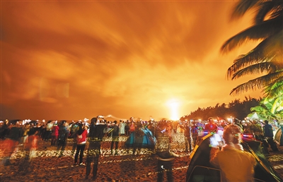 为了观看火箭发射,摄影爱好者王鹏提前一周就在文昌市龙楼镇上订好了酒店。“没想到这么火爆,已经好多酒店都订满了!”王鹏告诉海南日报记者,在文昌龙楼镇的沙滩、航天科普中心、清澜大桥下的市民公园,到处都是不远千里赶来观礼的人群,有的情侣结伴,有的带着孩子,像过节一样热闹喜庆。