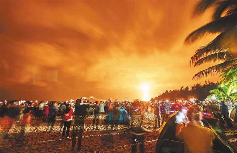 发射场外,绵延数里的沙滩上,观礼的人潮发出欢呼声,“祖国万岁”“航天加油”……阵阵欢呼被海风传递得越来越远。