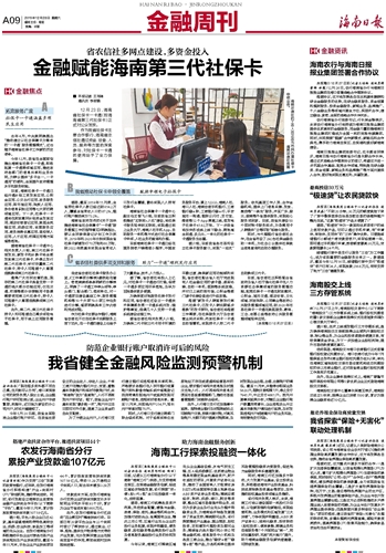 作为我省社保卡主要合作银行,海南省农信社通过资金、设备、人员、服务等方面的深度参与,对社保卡一卡通的使用给予了全力保障。