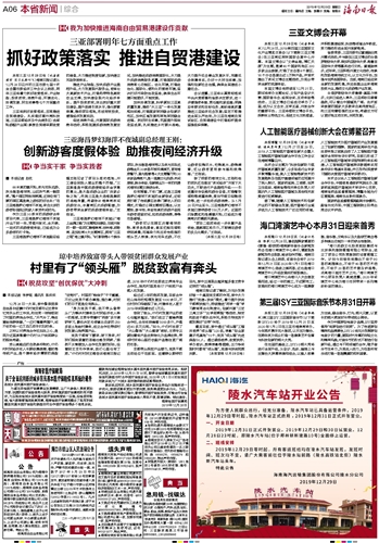 海南日报 本省新闻综合 006 2019-12-291 2019年12月29日 星期日