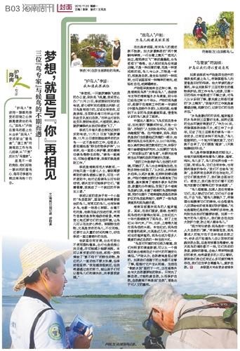 “我的工作是保护鸟儿生活的大环境,环境好了,鸟儿也会幸福地生活,生物多样性也实现了。”从水田、水库到淡水沼泽,从咸水鱼塘、红树林到潮间滩涂,卢刚基本摸清了海南冬季水鸟的种类、数量和分布情况;发现了多个海南鸟类新纪录,丰富了海南的鸟类物种数据,同时也提升了海南湿地类型自然保护区的鸟类监测能力。