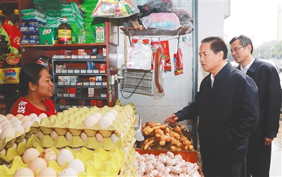 刘赐贵强调,“菜篮子”是人人要拎的民生要事,是天天面对的长远大计,必须要有科学长远的规划,从源头上抓起。畜禽养殖要在保护生态环境的前提下科学布局、适度养殖,避免养殖规模和市场价格大起大落,防止价贵伤民、价贱伤农。蔬菜种植要进一步落实蔬菜基地建设各项措施,把握好种植品种、面积、供应时间,确保菜价稳定。要加大外地肉菜调运力度,有效降低物流成本,落实“绿色通道”政策,加强公益性大型农贸批发市场建设,不断丰富市场供应,让政府各种红利真正落到市民的“菜篮子”里,群众得到实惠。要加强市场监管,营造良好环境,确保节日商品供应充足、价格稳定,让群众满意而归。