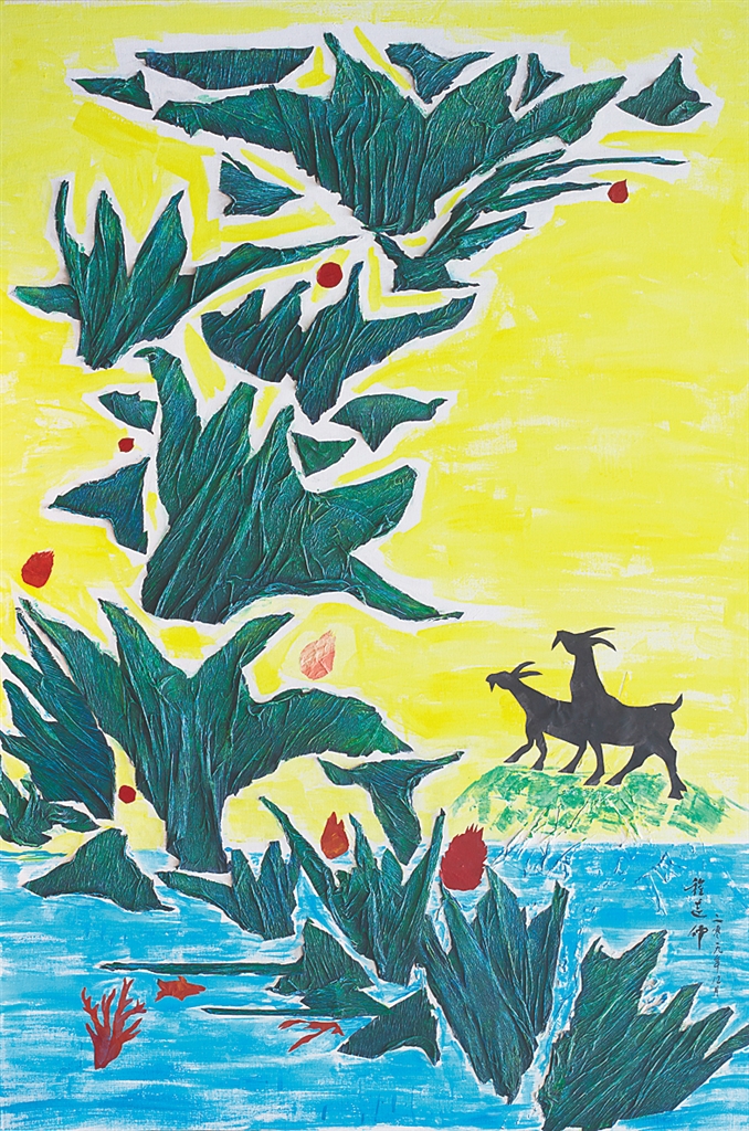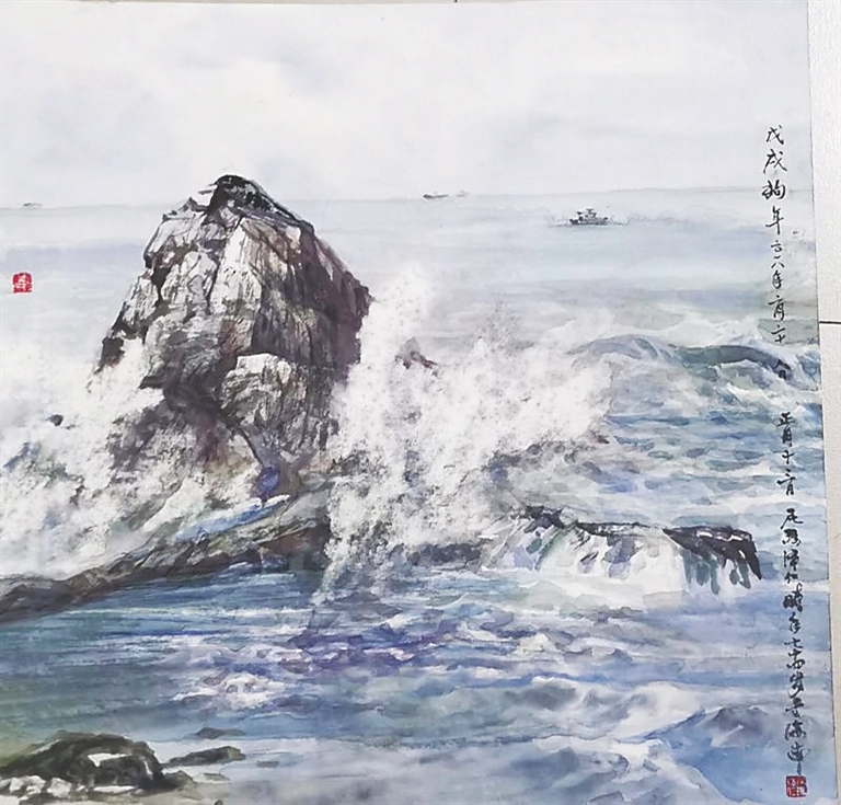 此次展览中,尼玛泽仁带来了《五指山》《三亚海岸》《清水湾的海浪》《海南三亚鸟巢》等4幅国画。“叠翠就是无尽的绿色,这是海南的底色。我的画作赞誉的是海南的生态平衡,赞誉的是海南人民对生态的保护。”