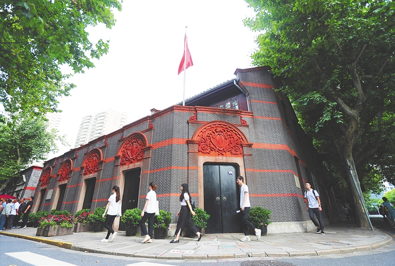 图一:全党开展“不忘初心、牢记使命”主题教育,图为上海大学志愿者在中共一大会址纪念馆。