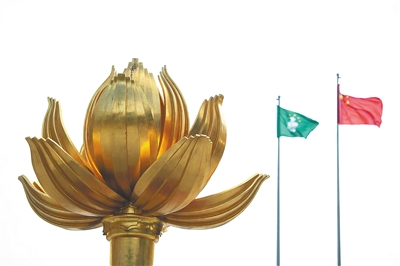 图六:澳门金莲花广场上的《盛世莲花》雕塑。