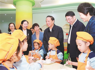 刘赐贵强调,要按照“全省一盘棋、全岛同城化”理念,科学规划、合理布局全省养老、幼教资源,重点产业园区要优先落实,配套建设最好的幼儿园,为来琼创新创业人才解决后顾之忧。要按照“尽力而为、量力而行”要求,加快推进养老育幼相关基础设施建设和软硬件条件提升。要按照“政府主导、社会参与”原则,充分发挥海南开放政策优势,推动体制机制改革创新,鼓励包括外资在内的社会力量积极参与,在保障养老育幼基本公共服务公平可及的基础上,用市场化手段推动提升服务质量和水平,形成能满足不同层次、不同类型需求的多元服务供给体系。