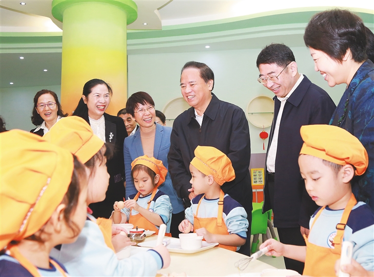 调研中,刘赐贵主持召开座谈会,听取全省养老服务、幼儿教育工作情况汇报,充分肯定了我省近年来民生领域“一老一小”工作的成效。他指出,以习近平同志为核心的党中央高度重视做好“一老一小”工作,习近平总书记在党的十九届四中全会、中央经济工作会议上都对解决好“一老一小”民生问题提出明确要求。当前,做好“一老一小”工作对推动建设海南自由贸易港,打造全省人民的幸福家园具有重要意义。各级党委政府要认真学习领会贯彻习总书记重要讲话和重要指示精神,健全幼有所育、学有所教、劳有所得、病有所医、老有所养、住有所居、弱有所扶等方面国家基本公共服务制度体系,特别是加快建设养老服务体系,支持社会力量发展普惠托育服务,让全省每个老人都能安度晚年,每个孩子都有幸福童年,也让中青年人有更多精力投入到干事创业中,为建设中国特色自由贸易港凝聚更大力量。