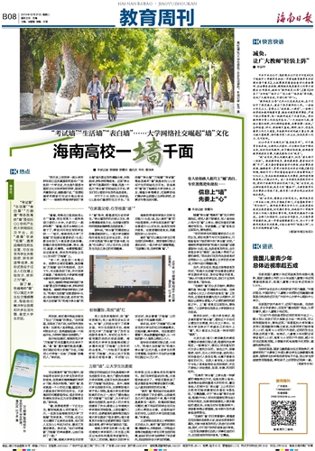 “明天早上有同学一起从学校拼车到三亚凤凰国际机场吗?”“我捡到一个学生证,失主是外国语与国际文化交流学院的同学,里面还夹着身份证、港澳通行证。”“我想知道学校哪家打印店价格比较优惠?”……海南热带海洋学院的“表白墙”每天都会发布情感分享、失物招领、拼车拼团等信息。这面“表白墙”并不是真实的一堵墙,而是一个名为“表白墙”的网络社交平台,学生们可以借助平台发布各类信息。