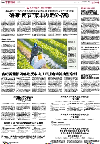 海南日报 本省新闻综合 006 2020-01-011 2020年01月01日 星期三