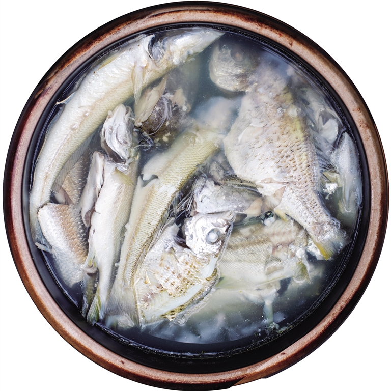中国人讲究大味至淡,小海鲜鱼汤算是将其发挥到了极致。小海鲜鱼汤也被称为小海杂鱼汤,一个“杂”字透出玄机,这种鱼汤必须是几种鱼杂合在一起煮,各种鱼的鲜味相辅相成、鲜上加鲜。小海鲜鱼汤的主料是产自小海的鲻鱼、小红鱼、白鳍鱼、沙针鱼、立鱼、打铁鱼、洛仔鱼等。选几种小海鱼去内脏去鳃洗净,砂锅文火慢煮,葱姜等一般鱼汤中用来压腥的调料是不需要的,最多就是加少许盐,就能煮就一锅甘甜、鲜美、清香的鱼汤。敢这么任性地烹饪鱼,只能说万宁人对自家的新鲜食材有着巨大的自信。不信的话,你先喝一口飘着鱼油花的鱼汤,尝一口滑嫩的鱼肉再说。