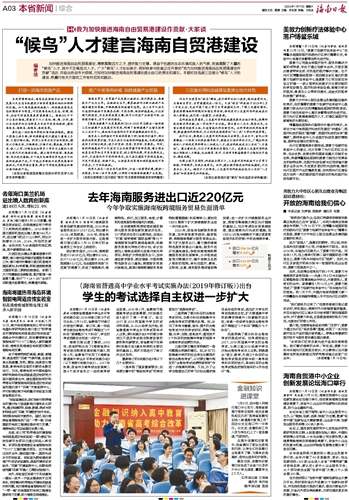 海南日报 本省新闻综合 003 2020-01-111 2020年01月11日 星期六