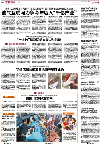 海南日报 本省新闻综合 004 2020-01-111 2020年01月11日 星期六
