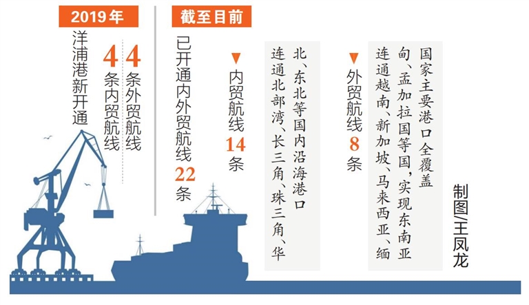 据悉,洋浦港不断新增加密航线,吸引国内外集装箱货源聚集,已初步形成了以洋浦港为国际中转港的航线框架。