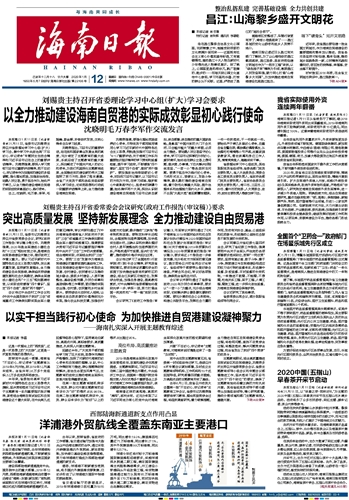 海南日报 头版 001 2020-01-121 2020年01月12日 星期日