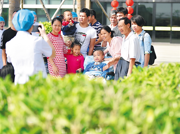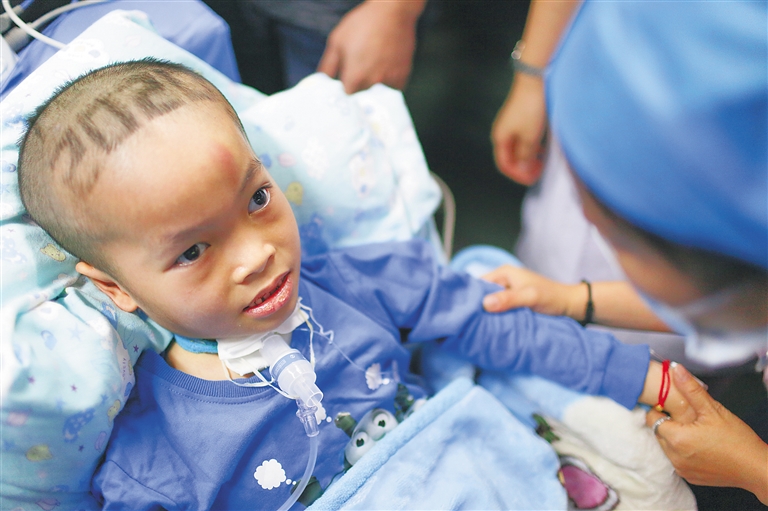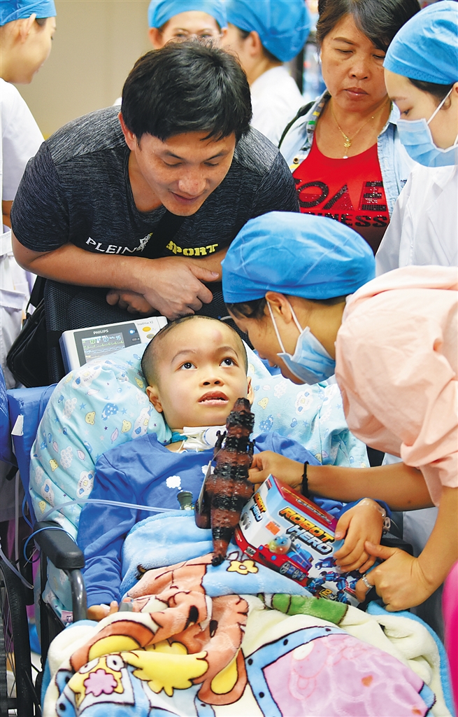 “小齐,开心吗?”医护人员纷纷蹲下身来问孩子,小齐依然用笑容回答。