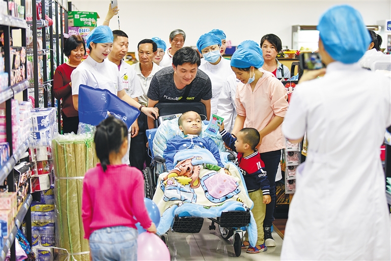 “小齐,你看你今天多厉害,那么多医生和护士阿姨都陪着你逛超市,还有专门的摄影师哥哥给你拍照呢!”小齐妈妈一直用温柔的语调,笑盈盈地哄孩子开心。