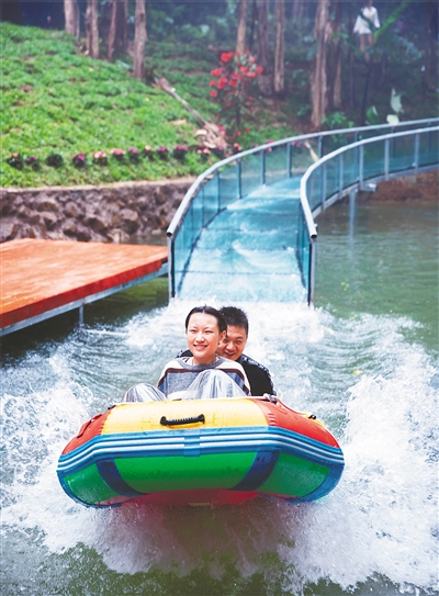 游客在体验高空漂流。 海报集团全媒体中心记者 刘洋 摄