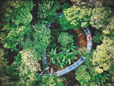 俯瞰高空漂流项目。 琼中百花岭热带雨林文化旅游区供图