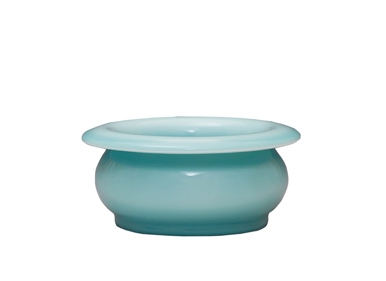 展览中,一件徐定昌的作品《玉潭凝脂》正是追求着那一份宁静之美,其温润的口沿,圆弧的瓶身,青如玉、明如镜的粉青釉内壁,犹如一汪浅滩碧水,极具艺术美感。徐定昌想表达的就是一种和谐、宁静的心境,观看这件作品,能让人寻求到心底的宁静,让躁动的人平和。