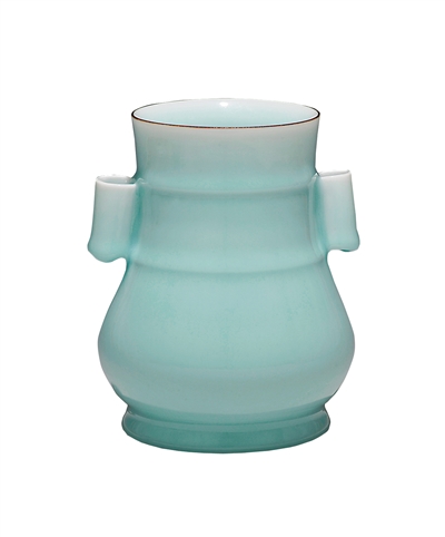 而陈永德的另一件参展作品《喜象生平》曾在2019年乌镇世界互联网大会中被选作政要礼品。这是一只梅子青釉象耳瓶,色釉全部是矿物质,造型简洁大方,双耳取“象”为原型设计,形态刻画自然,象鼻微翘,生动可掬。在传统文化中,“象”与“祥”谐音,故而此瓶予以中国喜象生平的景象。