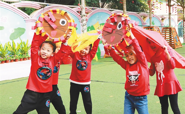 1月9日,海南省直机关第二幼儿园的孩子们表演舞狮。做好“一老一小”工作对推动建设海南自由贸易港,打造全省人民的幸福家园具有重要意义。