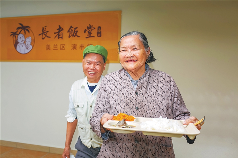 二○一九年十二月十七日,在海口市美兰区演丰镇敬老院的长者饭堂,老人们享受午餐。截至目前,全市共建成四十九家城乡长者饭堂。 本报记者 袁琛 摄 |