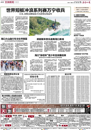 海南日报 文体新闻综合 012 2020-01-131 2020年01月13日 星期一