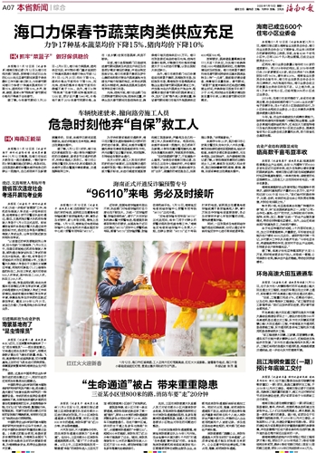 海南日报 本省新闻综合 007 2020-01-131 2020年01月13日 星期一