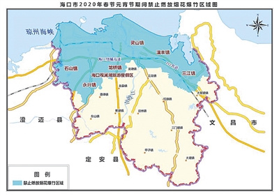 据了解,今年春节、元宵节期间,海口下列区域禁止燃放烟花爆竹:绕城高速公路、212省道以北与海口市东、西行政界线围合的区域;石山镇、永兴镇、龙桥镇、灵山镇、三江镇、演丰镇等6个镇的全镇行政区域;海口观澜湖旅游度假区;法律法规禁止燃放烟花爆竹的其它区域。同时,节日期间遇不利污染物扩散天气状况,可采取在全市域范围内禁止燃放烟花爆竹等临时性限制措施。