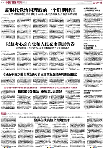 海南日报 中国/世界新闻综合 014 2020-01-151 2020年01月15日 星期三