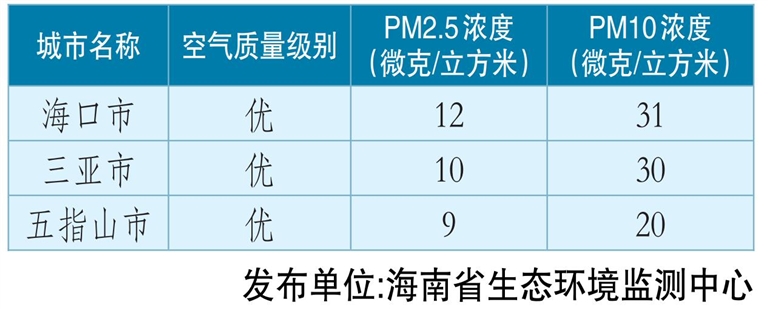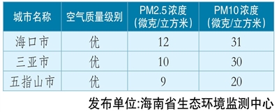 海南省重点城市空气质量日报