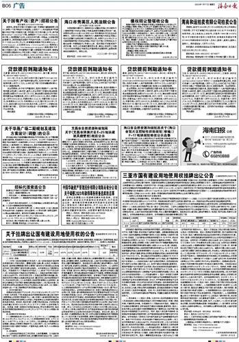 海南日报 广告 022 2020-01-171 2020年01月17日 星期五