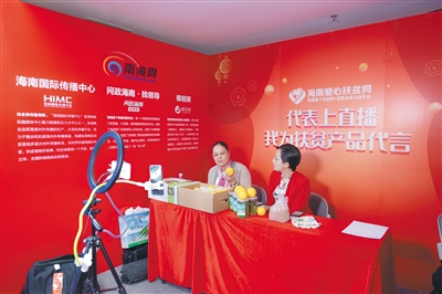 两会代表做客海南爱心扶贫网,上直播为扶贫产品代言,和网红主播共同直播推介海南扶贫农产品,助力消费扶贫。