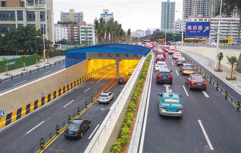 该项目工程于2019年7月18日开工,路线全长589米。建设内容主要包括连接白龙南路至大英山东二街的下穿通道、地面辅道以及排水和交通配套工程。工程起点为白龙南路,终点至省府北路-大英山东四路交叉口。下穿通道由敞开段和地道暗埋段组成,两侧均设置辅道及人行道。地道则采用双向四车道标准。文/本报记者 张期望 图/本报记者 李天平
