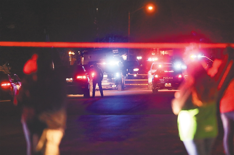 1月17日,警察在枪击现场执勤。 新华社/美联