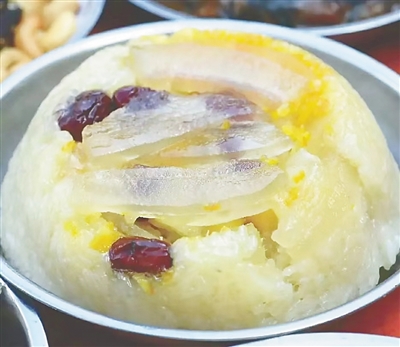 谈及八宝饭为何受欢迎,他介绍道,八宝饭本身味道比较甜,象征着甜甜蜜蜜,新的一年更要过上甜蜜的生活。其次,八宝饭的形状也像个“聚宝盆”,红黄相间,寓意新一年的红红火火。