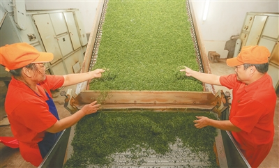 “锅炉温度控制在400摄氏度左右,烘烤10分钟左右,杀好青的茶叶在传送中逐渐降温,并逐渐摊晾至完全冷却才可进行下一步加工。”白马岭分公司厂长饶忠军说。