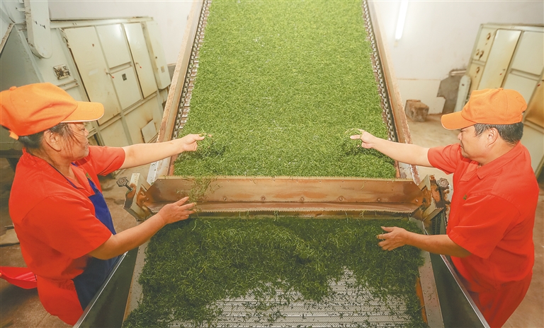“烘干后,再经过车色和分筛,早春茶便制成了。经过重重磨练,一片鲜叶终于成为条索细紧、匀正,色泽鲜亮,清香扑鼻的茶叶。”丁妹说,在收茶时节,为了第一时间赶制鲜茶,职工们常会忙到凌晨两三点。