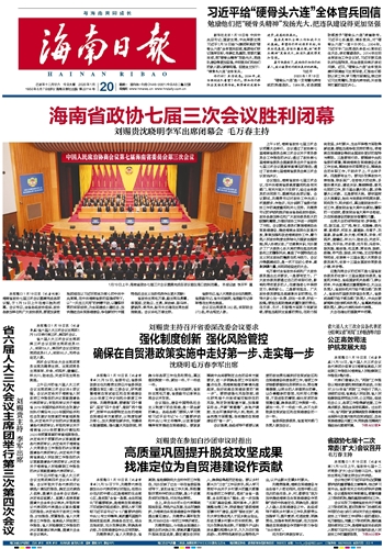 | 海南日报 头版 001 2020-01-201 2020年01月20日 星期一 |